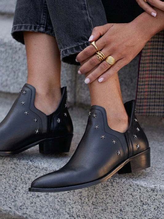 Women's Studded Ankle Boots – Pointed Toe Slip-On Western